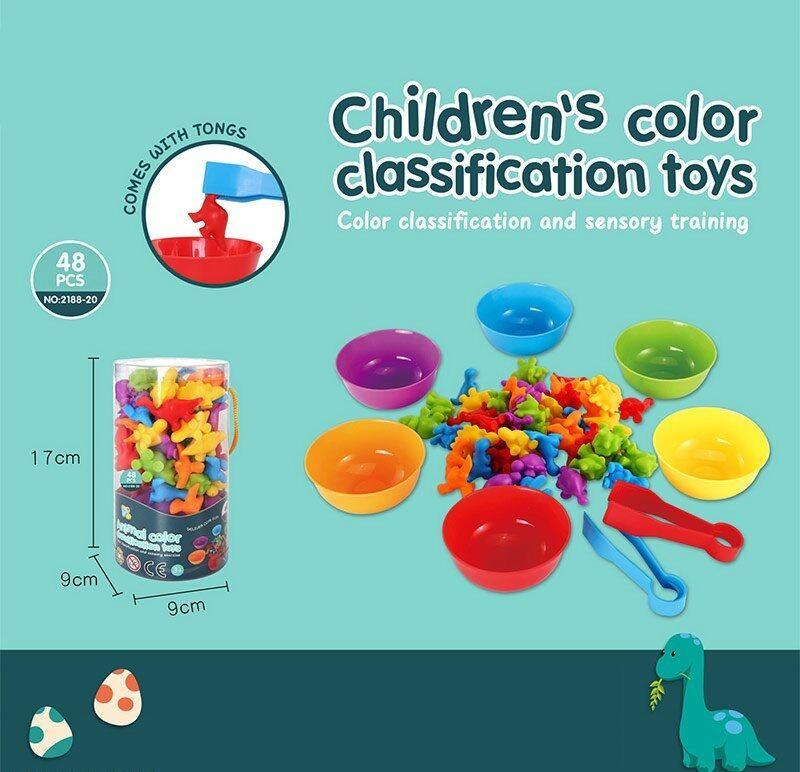Логічна гра сортер “Динозаври”, 48 елементів, гумові фігурки, 6 кольорів, щипці, мисочки, сортер, у ту